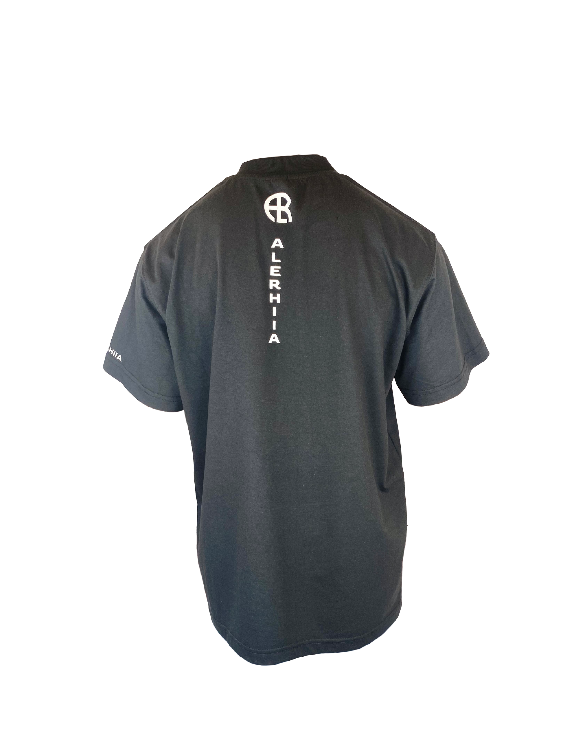 Introducing the epitome of luxury and comfort, the Alerhiia Black Oversized T-Shirt. Crafted with the utmost care and attention to detail, this t-shirt is a true testament to refined style and impeccable quality.